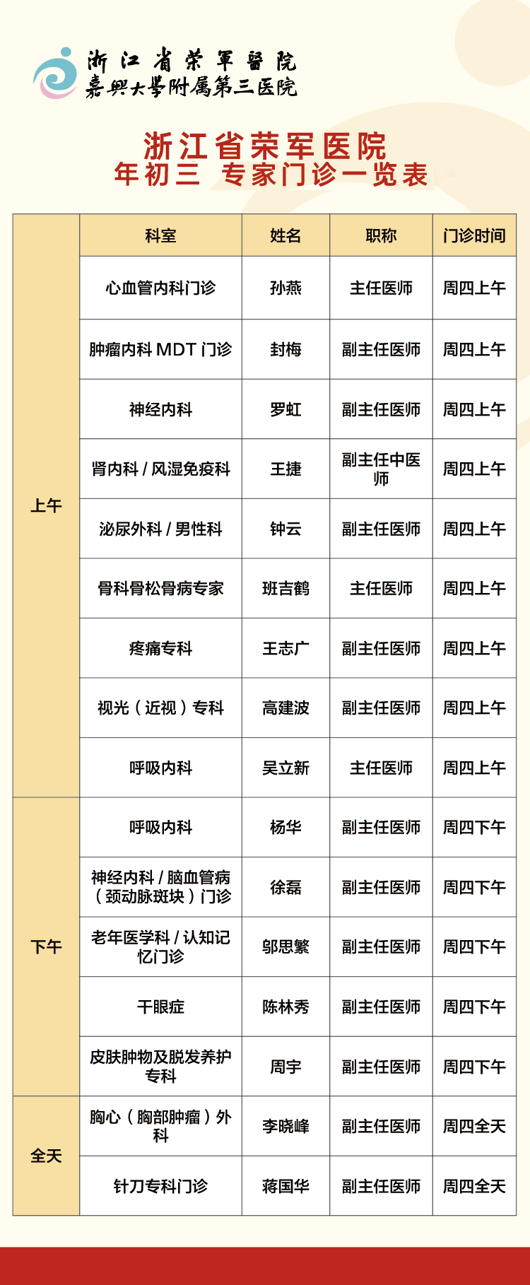 新春守健康 | 浙江省榮軍醫(yī)院2026年春節(jié)門診安排