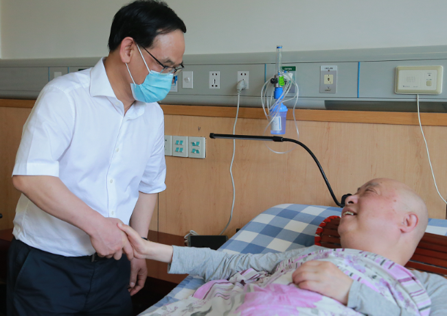 八一前夕,省退役軍人事務(wù)廳黨組書記、廳長林云舉到省榮軍醫(yī)院看望慰問榮軍并調(diào)研指導(dǎo)工作,廳黨組成員、副廳長徐華水及廳機(jī)關(guān)有關(guān)處室負(fù)責(zé)人陪同。