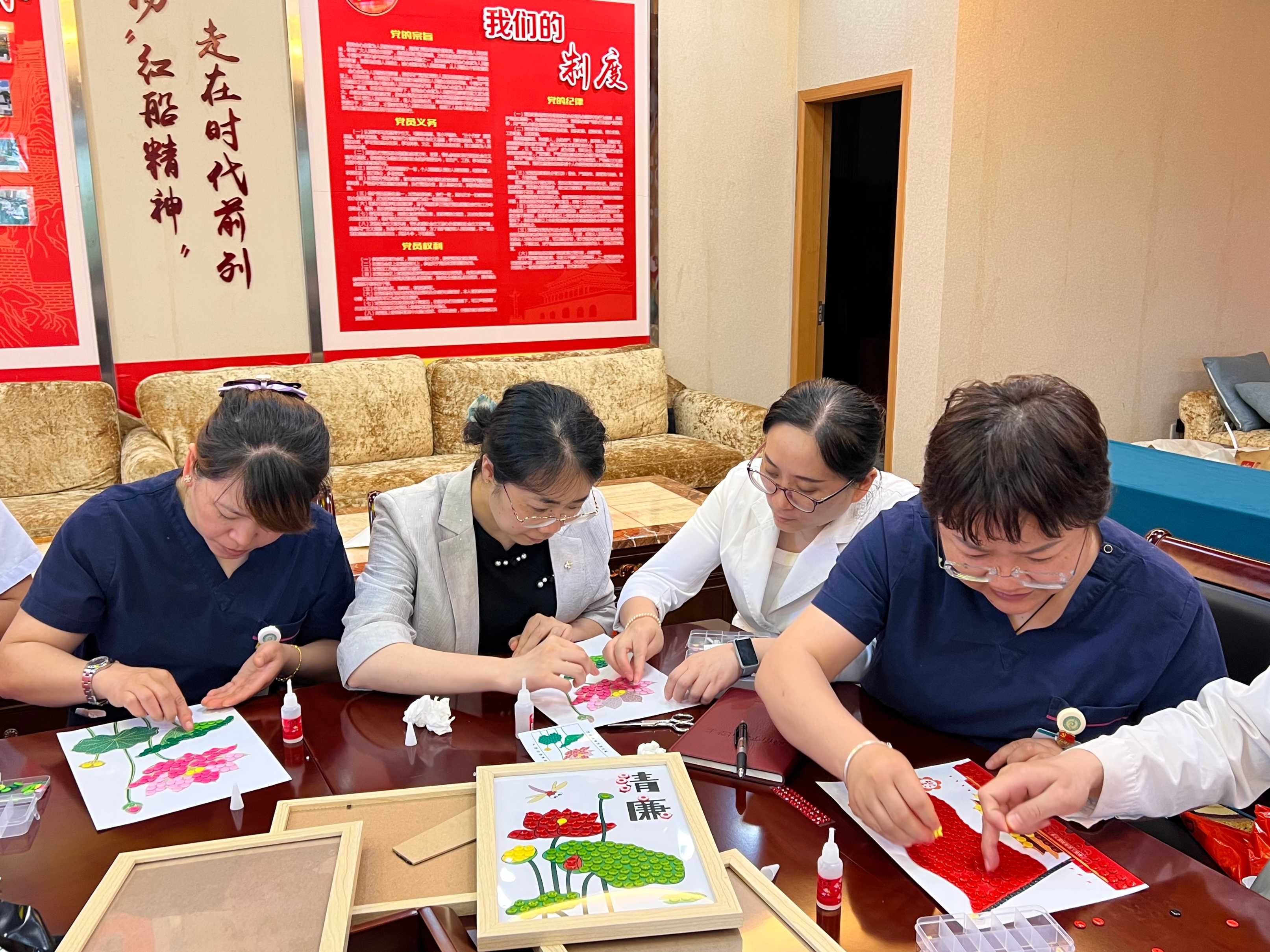 隨后,各支部黨員共同參與廉政紐扣畫制作活動,通過創(chuàng)作以廉潔文化為主題的藝術(shù)作品,在寓教于樂中深化了對廉潔從業(yè)的理解與感悟。