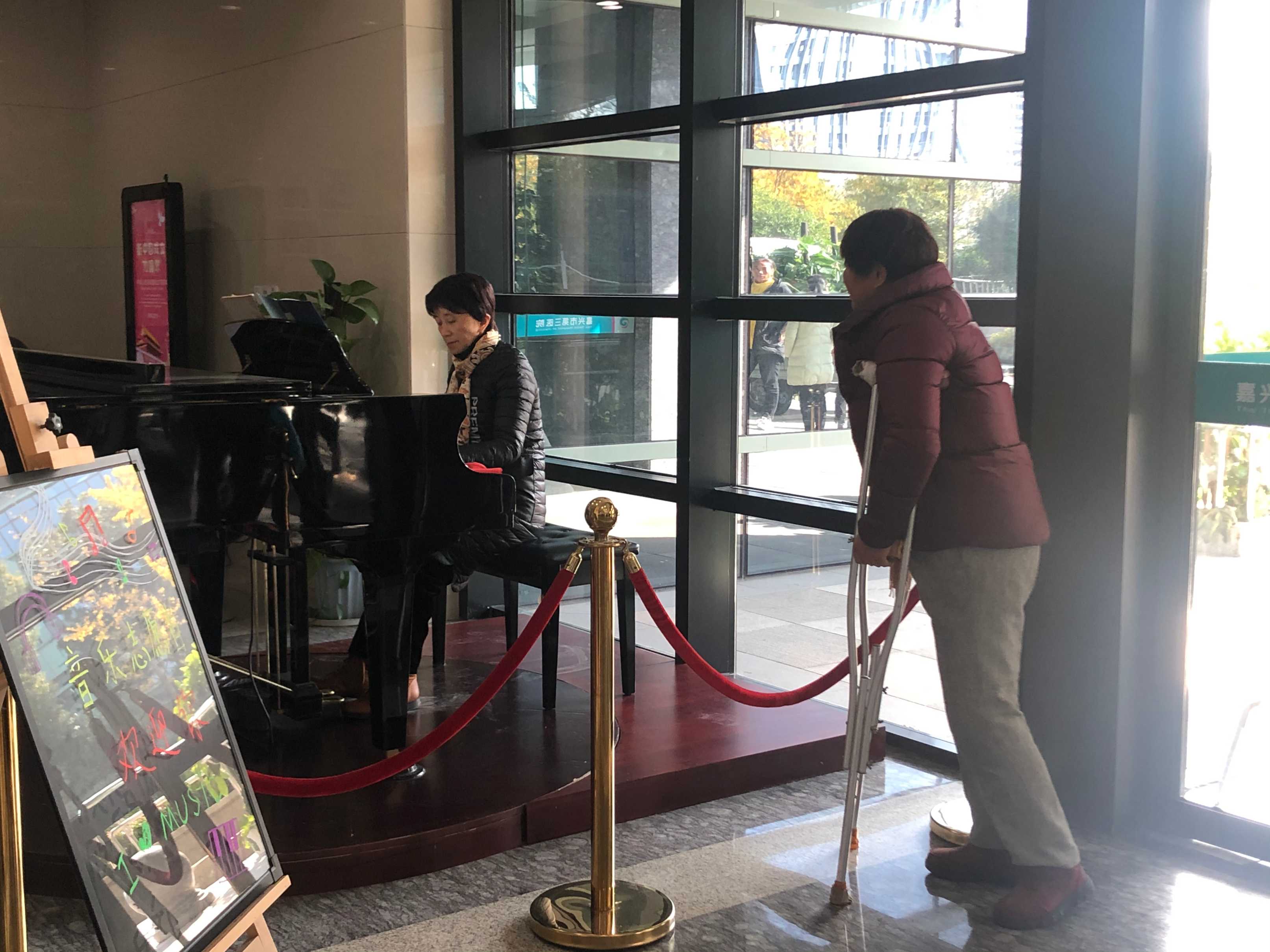 2019年的音樂角有了“固定班底”,老年大學(xué)的鋼琴班隊(duì)伍、高校音樂老師蕭老師、熱愛音樂的方曉月阿姨,還有每逢寒暑假便會來報道的“小朋友們”……