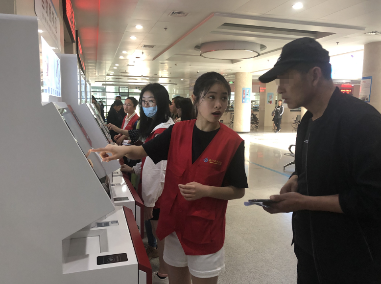 門診就醫(yī)有難題,患者們習(xí)慣了第一時間尋求志愿者的幫助。操作自助機(jī),就診樓層指引,報告單打印……門診的各個角落都分布著紅色的身影,成為門診的一道亮麗風(fēng)景線。