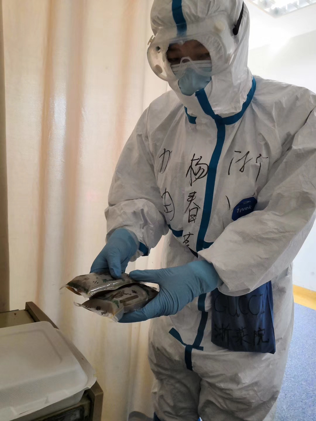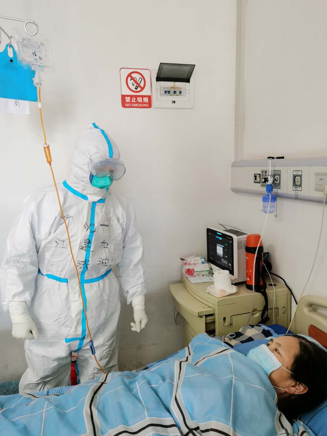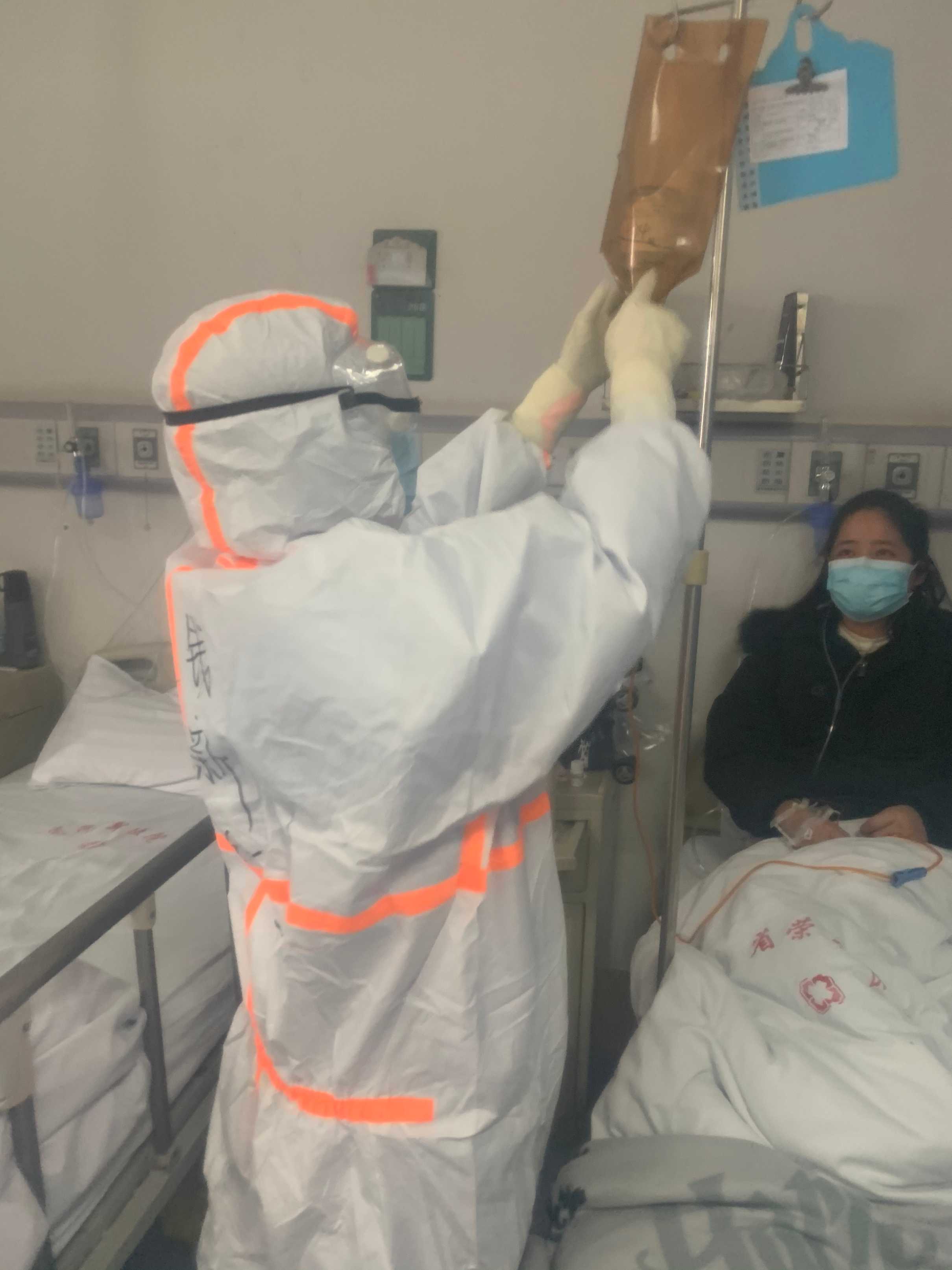 阿姨聽出我不是武漢本地人,連問(wèn)我們是哪里來(lái)支援的。我告訴她:“我們是浙江省榮軍醫(yī)院派來(lái)支援的,帶來(lái)了浙江的治療方案,你們一定能健康痊愈的。”