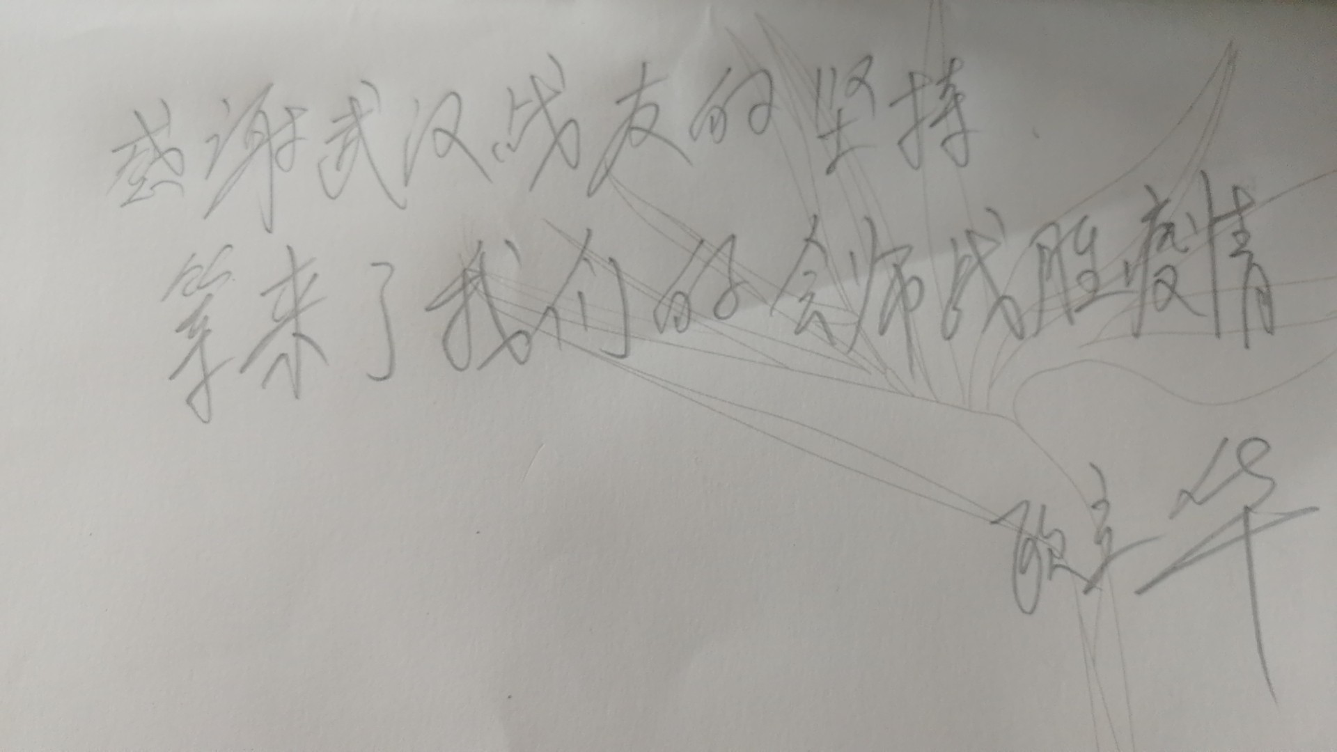 在武漢的日子里,我所看到的武漢的人民是堅(jiān)強(qiáng)的,他們懷著感恩的心頑強(qiáng)的與病毒戰(zhàn)斗著,而不曾相識(shí)的我們也在這個(gè)特殊時(shí)刻彼此感動(dòng)著。
