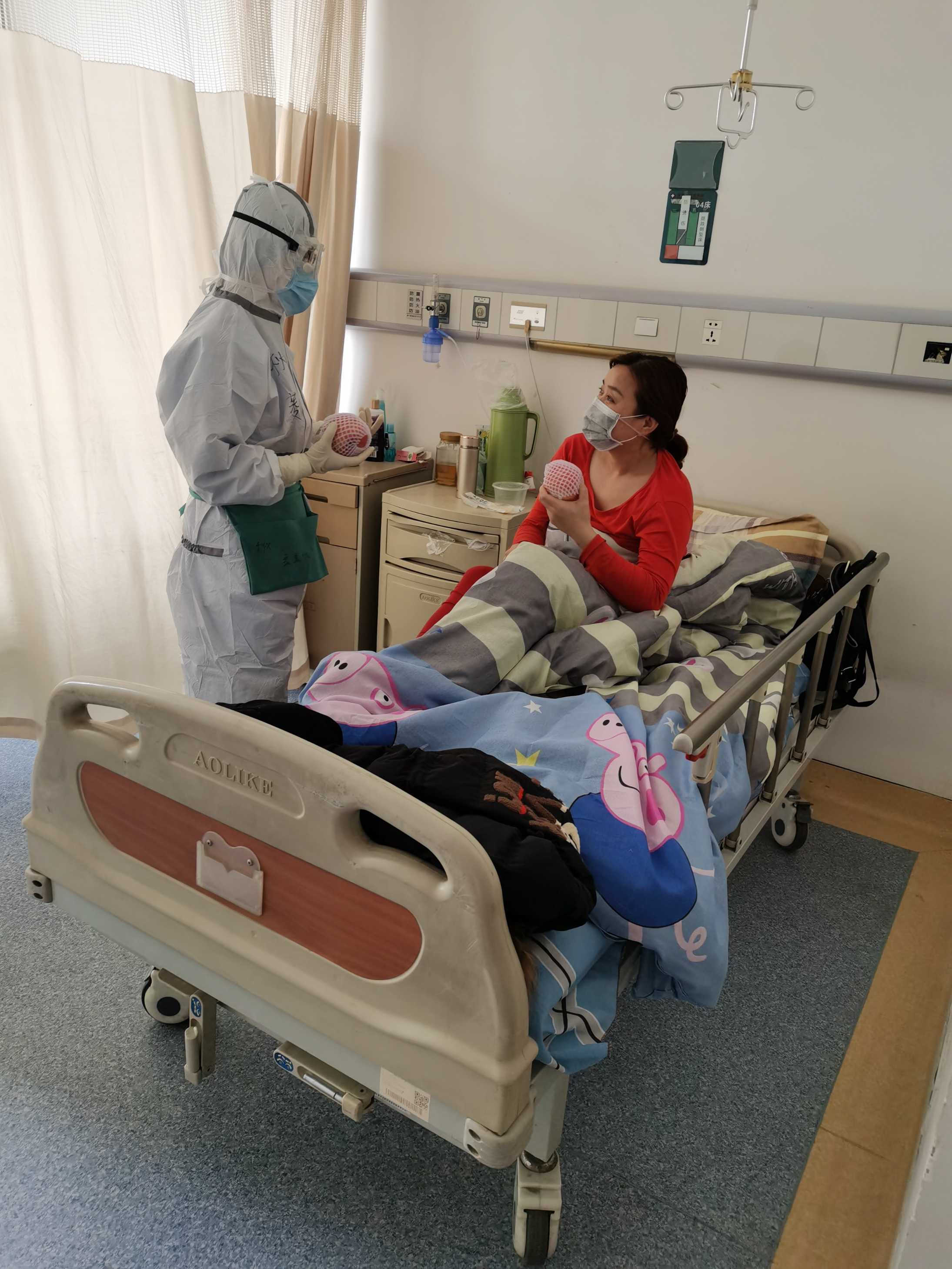 由于隔離病房的特殊性,病人是不能走出房間的,家屬也是限制來(lái)院探視的,所以水果在這里就成了稀罕的東西。很多病人告訴我們很久沒有吃過(guò)水果,有些甚至有20多天之久。